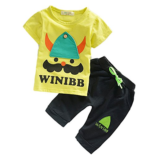 髭キャラクターの可愛らしいデザインTシャツとパンツで、どのお子様にもお似合いになるはずです。