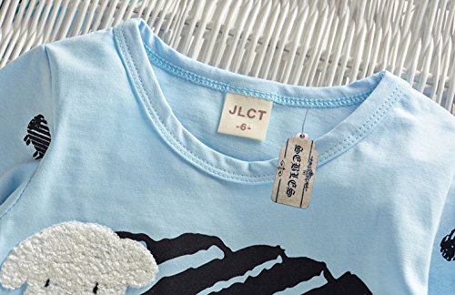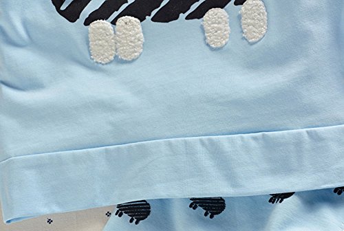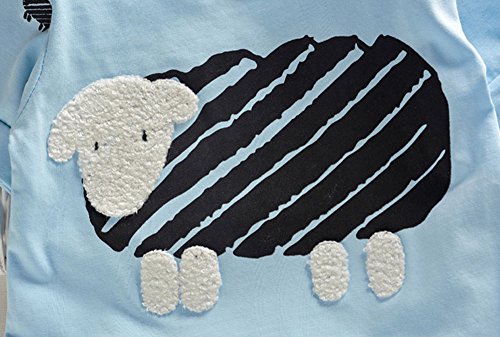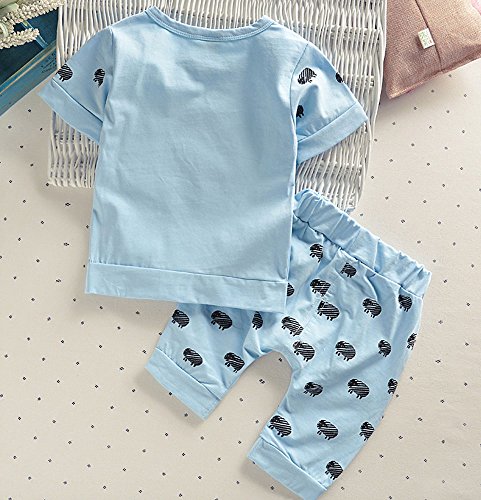 【SEBLES】ベビー 赤ちゃん 男の子 女の子 ユニセックス 半袖 ラウンドネック プリント 羊 無地 可愛い Tシャツ ズボン ボトムス セット カジュアル コットン 綿(ライトブルー,80cm)