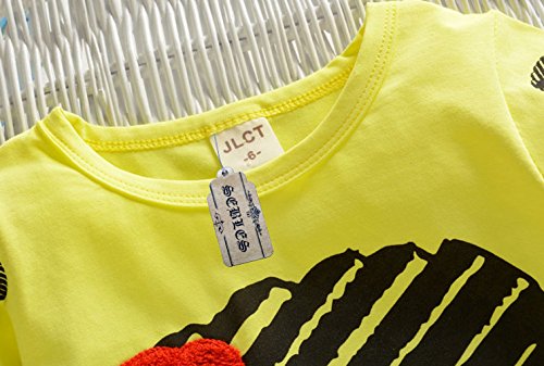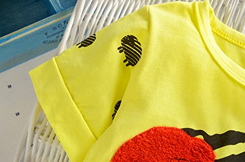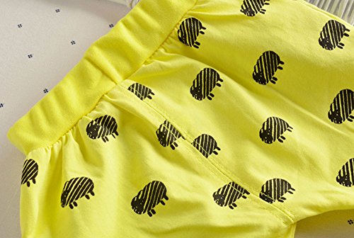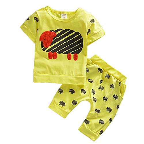 【SEBLES】ベビー 赤ちゃん 男の子 女の子 ユニセックス 半袖 ラウンドネック プリント 羊 無地 可愛い Tシャツ ズボン ボトムス セット カジュアル コットン 綿(イエロー,100cm)