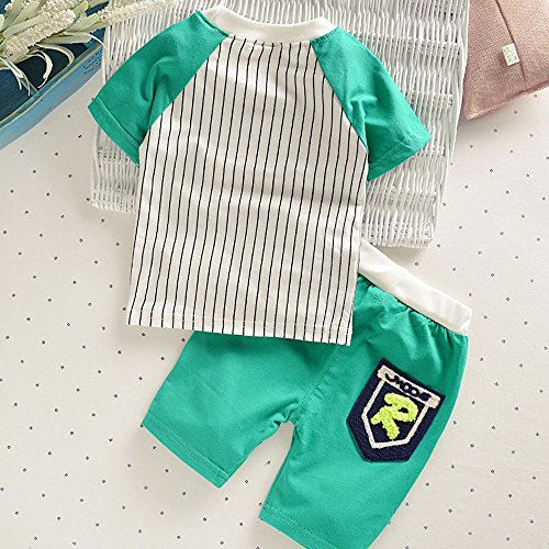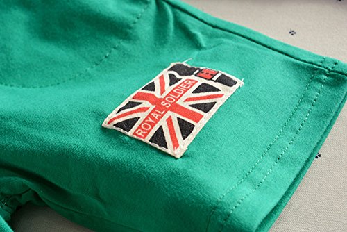 【SEBLES】ベビー 赤ちゃん 男の子 女の子 ユニセックス 半袖 ラウンドネック プリント Tシャツ 国旗 イギリス 兵隊さん ズボン ボトムス セット コットン 綿(グリーン,90cm)
