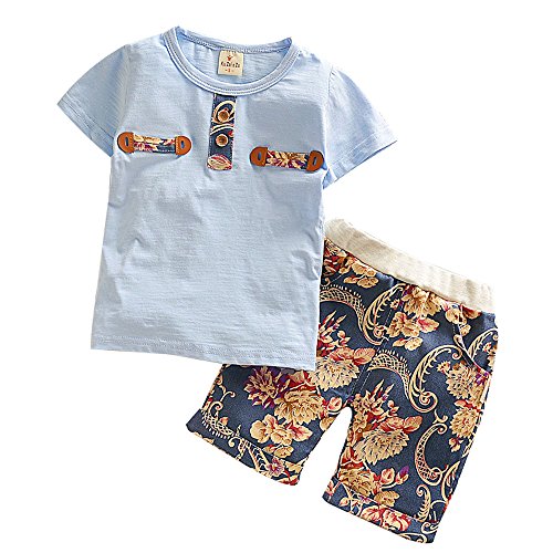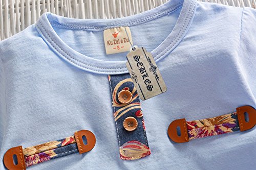 【SEBLES】ベビー 赤ちゃん 男の子 女の子 ユニセックス 半袖 ラウンドネック 夏 サマー サーフ Tシャツ パンツ ボトムス セット コットン 綿(ブルー,80cm)