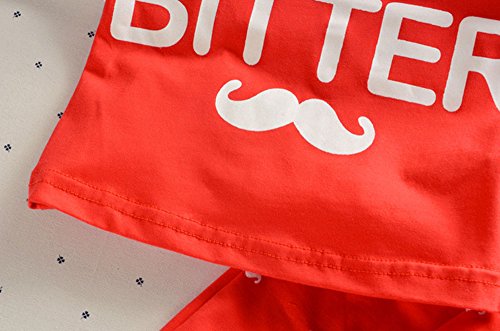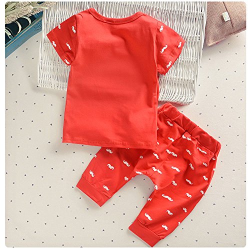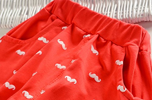 【SEBLES】ベビー 赤ちゃん 男の子 女の子 ユニセックス 半袖 ラウンドネック プリント Tシャツ 髭 ヒゲ クール ズボン ボトムス セット コットン 綿(レッド,110cm)