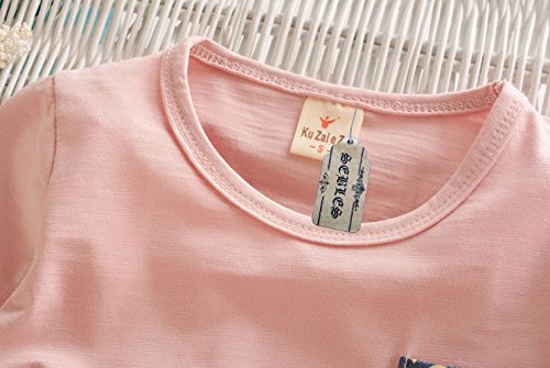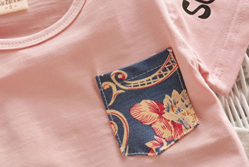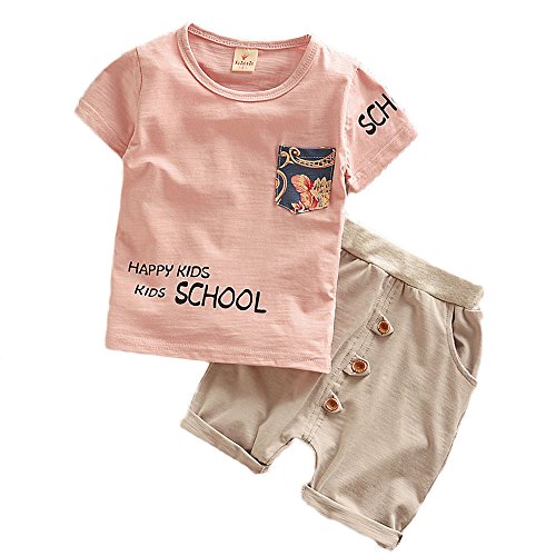 【SEBLES】ベビー 赤ちゃん 男の子 半袖 ラウンドネック プリント 無地 ポケット Tシャツ クール ズボン ボトムス パンツ セット ツーピース コットン 綿(ピンク,80cm)