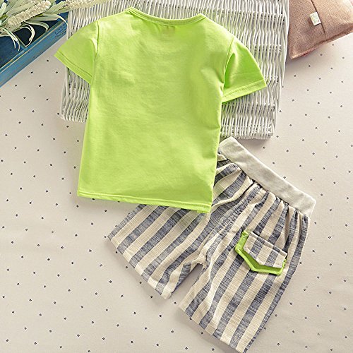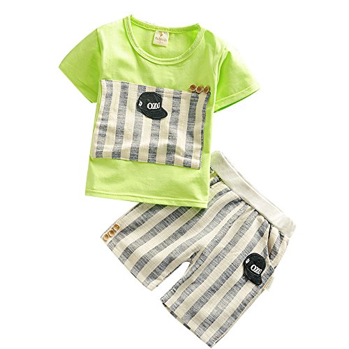 【SEBLES】ベビー 赤ちゃん 男の子 女の子 ユニセックス 半袖 ラウンドネック 無地 野球 Tシャツ ボーダー パンツ ボトムス ツーピース セット コットン 綿(グリーン,90cm)