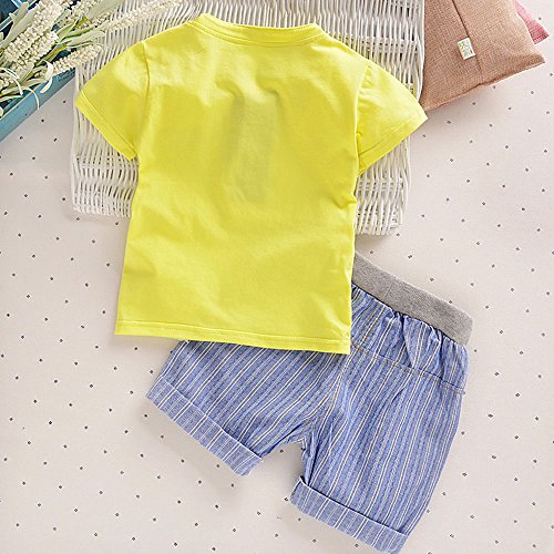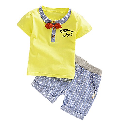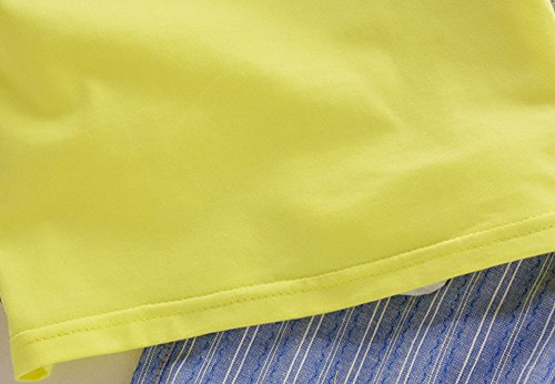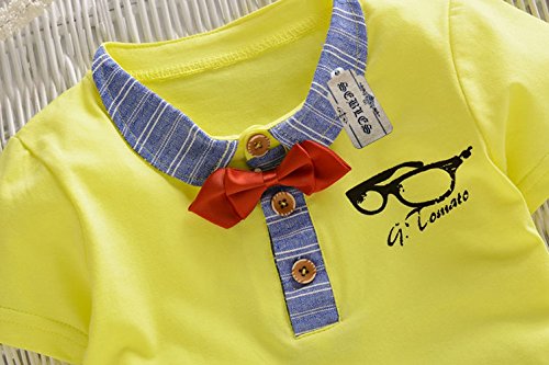 【SEBLES】ベビー 赤ちゃん 男の子 女の子 ユニセックス 半袖 襟 無地 プリント ネクタイ ボーダー柄 パンツ ボトムス ツーピース セット コットン 綿(イエロー,80cm)