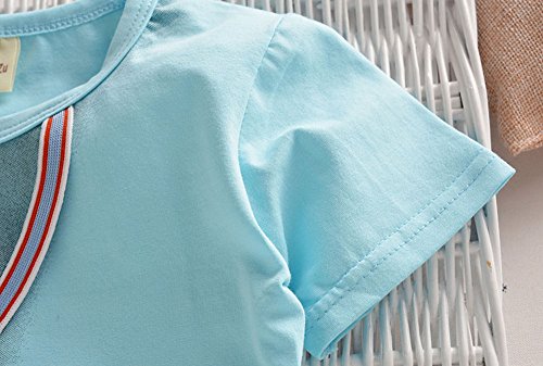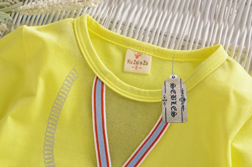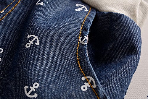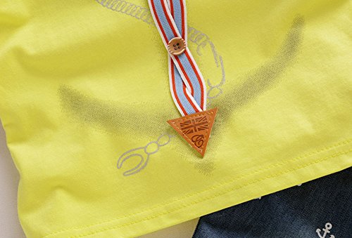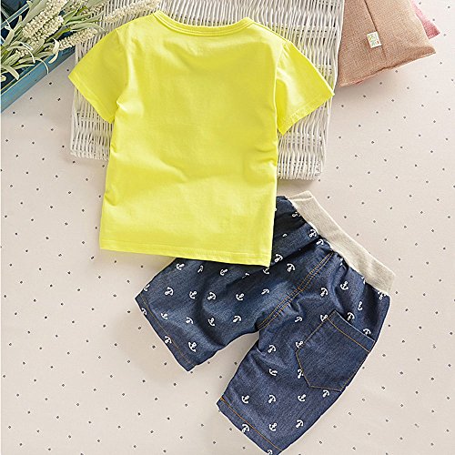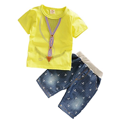 【SEBLES】ベビー 赤ちゃん 男の子 女の子 ユニセックス 半袖 プリント 無地 デニム イカリ柄 パンツ ボトムス ツーピース セット コットン 綿 初夏 夏(イエロー,110cm)