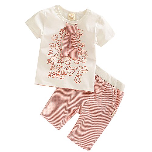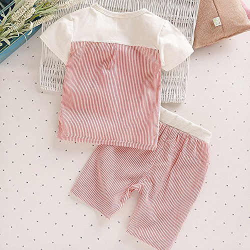 【SEBLES】ベビー 赤ちゃん 男の子 女の子 ユニセックス 半袖 ナンバー プリント 無地 ボーダー パンツ ボトムス ツーピース セット コットン 綿 初夏 夏 春(ピンク,80cm)