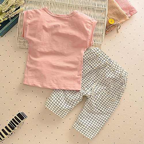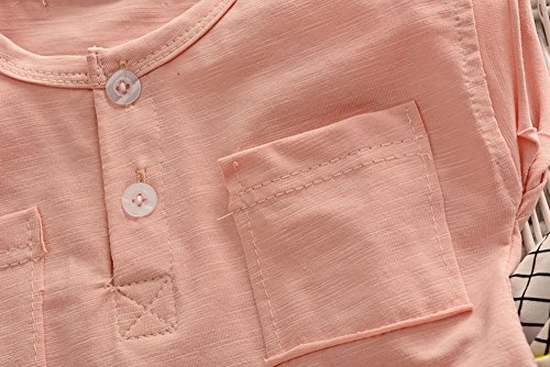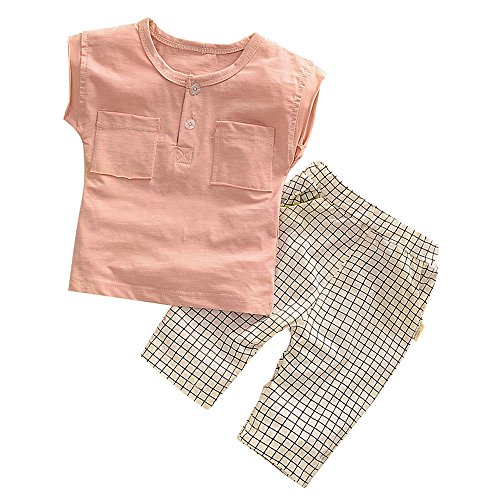 【SEBLES】ベビー 赤ちゃん 女の子 男の子 ユニセックス 半袖 ラウンドネック 無地 ポケット Tシャツ チェック ズボン ボトムス パンツ セット ツーピース コットン 綿(タイプC,85cm)