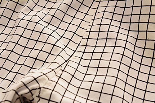 - シンプルな無地のTシャツとチェック柄パンツのツーピースです。