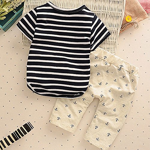 - ボーダーが可愛いTシャツとイカリ柄パンツのツーピースです。
