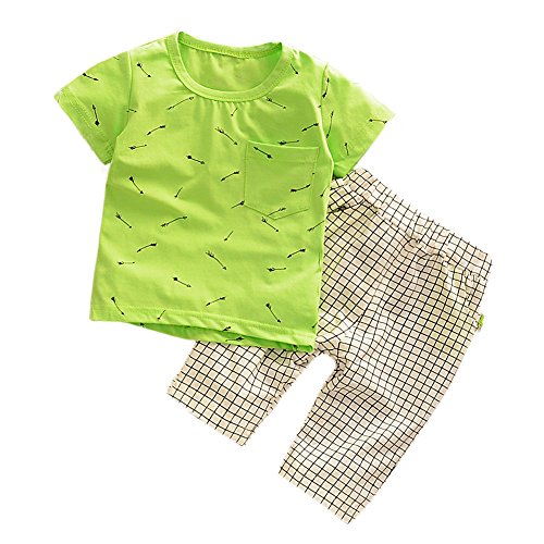 【SEBLES】ベビー 赤ちゃん 男の子 半袖 ラウンドネック プリント 無地 ポケット Tシャツ チェック ズボン ボトムス パンツ セット ツーピース コットン 綿(タイプC,100cm)