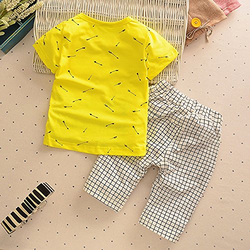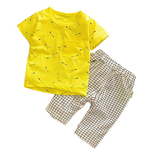【SEBLES】ベビー 赤ちゃん 男の子 半袖 ラウンドネック プリント 無地 ポケット Tシャツ チェック ズボン ボトムス パンツ セット ツーピース コットン 綿(タイプD,100cm)