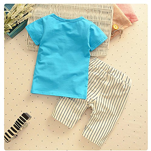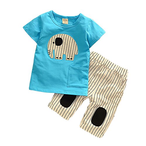 【SEBLES】ベビー 赤ちゃん 男の子 半袖 ラウンドネック ゾウさん 象 無地 ポケット Tシャツ ストライプ ズボン ボトムス パンツ セット ツーピース コットン 綿 夏 春(タイプA,110cm)