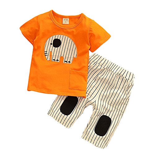 【SEBLES】ベビー 赤ちゃん 男の子 半袖 ラウンドネック ゾウさん 象 無地 ポケット Tシャツ ストライプ ズボン ボトムス パンツ セット ツーピース コットン 綿 夏 春(タイプB,80cm)