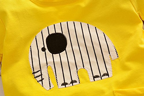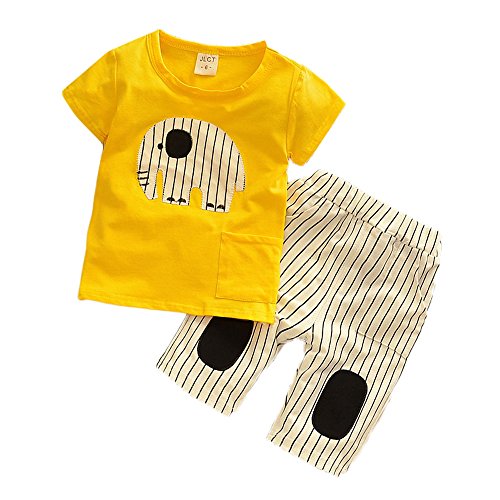 【SEBLES】ベビー 赤ちゃん 男の子 半袖 ラウンドネック ゾウさん 象 無地 ポケット Tシャツ ストライプ ズボン ボトムス パンツ セット ツーピース コットン 綿 夏 春(タイプC,90cm)