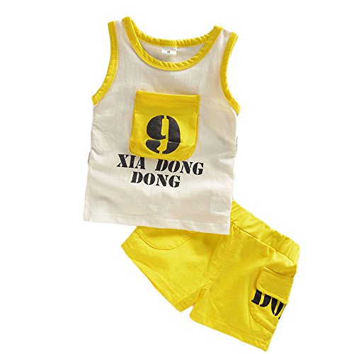 【SEBLES】ベビー 赤ちゃん 男の子 ノースリーブ ラウンドネック ナンバー 無地 シャツ 短パン ポケット ズボン ボトムス パンツ セット ツーピース コットン 綿 夏(タイプD,100cm)