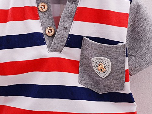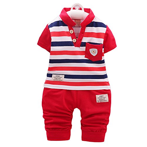 【SEBLES】ベビー 赤ちゃん 男の子 女の子 ユニセックス バンドカラー ボーダー ポロシャツ 無地 パンツ ズボン ボトムス コットン 綿 コットン ツーピース セット 夏 春(タイプC,110cm)