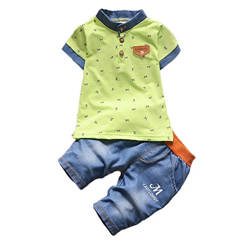 【SEBLES】ベビー 赤ちゃん 男の子 半袖 バンドカラー ポロシャツ 柄 デニム風 パンツ ズボン ボトムス コットン 綿 コットン ツーピース セット 夏 春(タイプD,120cm)