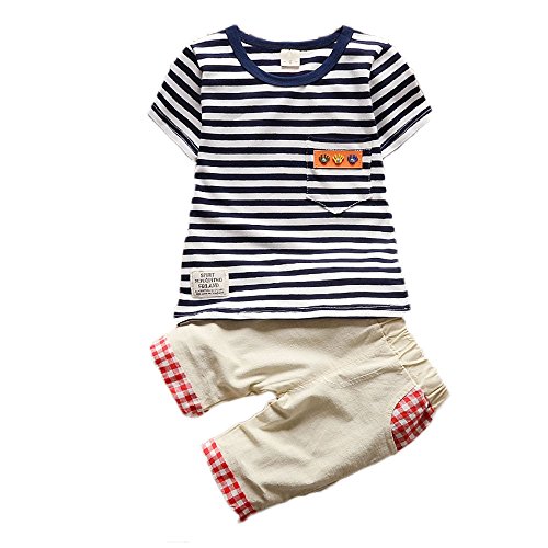 【SEBLES】ベビー 赤ちゃん 女の子 男の子 ユニセックス 半袖 ラウンドネック ボーダー Tシャツ チェック パンツ ズボン ボトムス コットン 綿 コットン ツーピース セット 夏 春(タイプA,100cm)