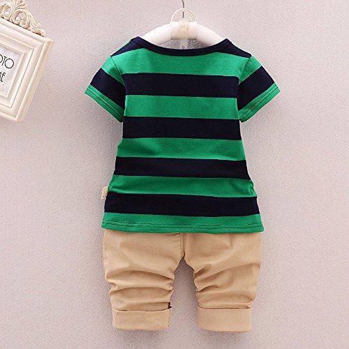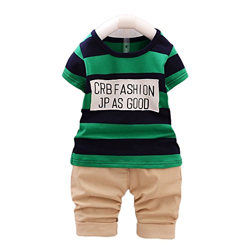 【SEBLES】ベビー 赤ちゃん 男の子 ラウンドネック ボーダー Tシャツ 無地 パンツ チノパン ズボン ボトムス コットン 綿 コットン ツーピース セット 夏 春(タイプB,120cm)
