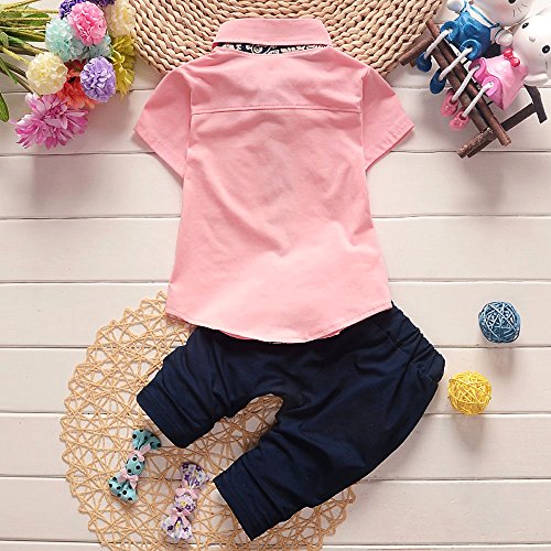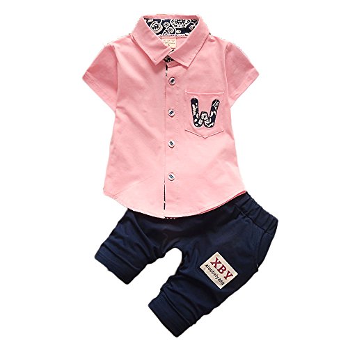 【SEBLES】ベビー 赤ちゃん 男の子 襟 無地 半袖 ポケット シャツ 無地 パンツ ズボン ボトムス コットン 綿 コットン ツーピース セット 夏 春(タイプC,90cm)