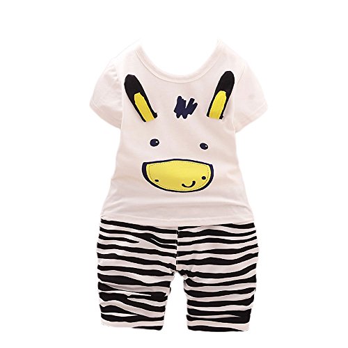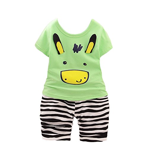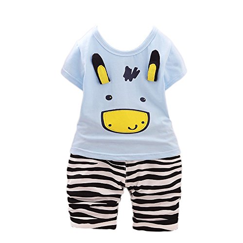 【SEBLES】ベビー 赤ちゃん 男の子 女の子 ユニセックス 牛 カウ ラウンドネック Tシャツ ボーダー パンツ ズボン ボトムス コットン 綿 コットン ツーピース セット 夏 春(タイプC,110cm)