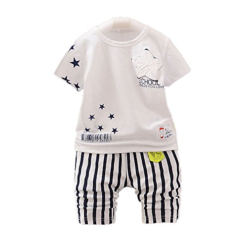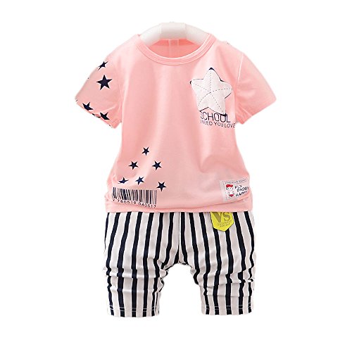 初夏~夏向けの赤ちゃんのTシャツ+パンツのセットです。