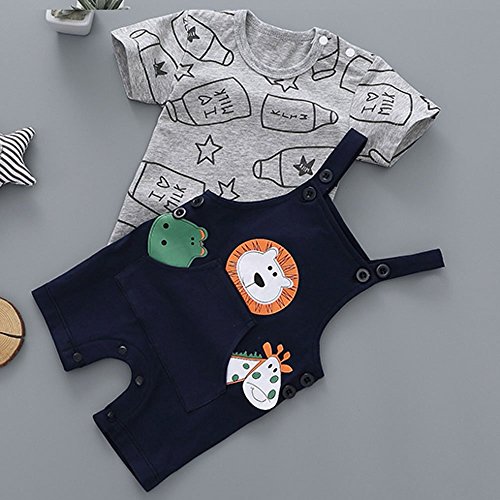 【SEBLES】ベビー 赤ちゃん 半袖 ラウンドネック シャツ Tシャツ オーバーオール セット カジュアル 0歳 1歳 2歳 3歳 ソフト コットン(タイプC,90)