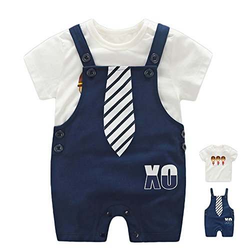 【SEBLES】ベビー 赤ちゃん 半袖 ラウンドネック シャツ Tシャツ オーバーオール セット カジュアル 0歳 1歳 2歳 3歳 ソフト コットン(タイプD,73)
