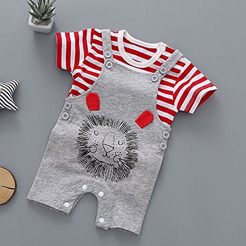 【SEBLES】ベビー 赤ちゃん 半袖 ラウンドネック シャツ Tシャツ オーバーオール セット カジュアル 0歳 1歳 2歳 3歳 ソフト コットン(タイプG,110)