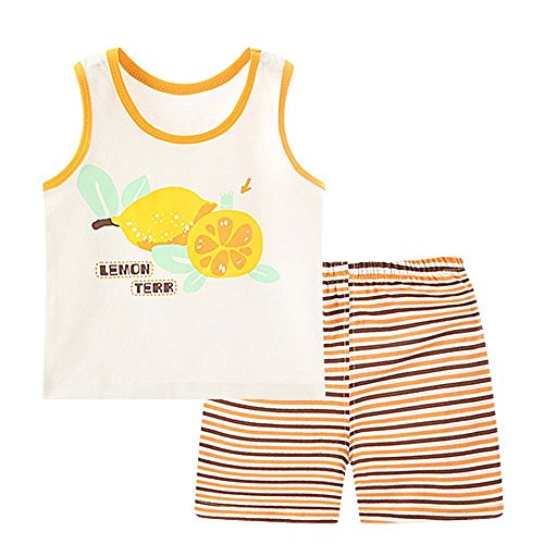 【SEBLES】ベビー服 ベビー 赤ちゃん 男の子 女の子 ノースリーブ シャツ 短パン パンツ シャツ セット 夏 キャラクター フルーツ プリント 無地 可愛い 涼しい コットン 綿(タイプE,130cm)