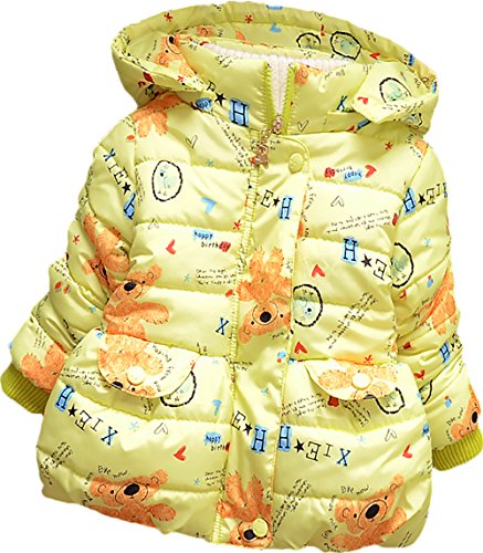 【SEBLES】ベビー服 女の子 あったか プリント 長そで ダウンジャケット 上着(イエロー,80cm)