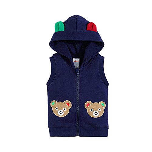 【SEBLES】ベビー服 ベスト パーカー フード ノースリーブ スウェット コットン 綿 アップリケ 無地 耳 0歳 1歳 2歳 ユニセックス 男の子 女の子(タイプB,73cm)