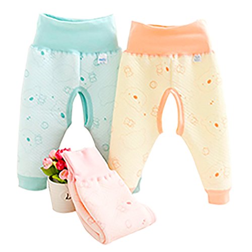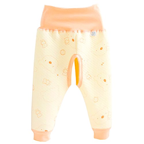 【SEBLES】ベビー服 くまちゃん プリント 蒸れにくい 前開き 長ズボン パンツ 赤ちゃん(イエロー,73cm)