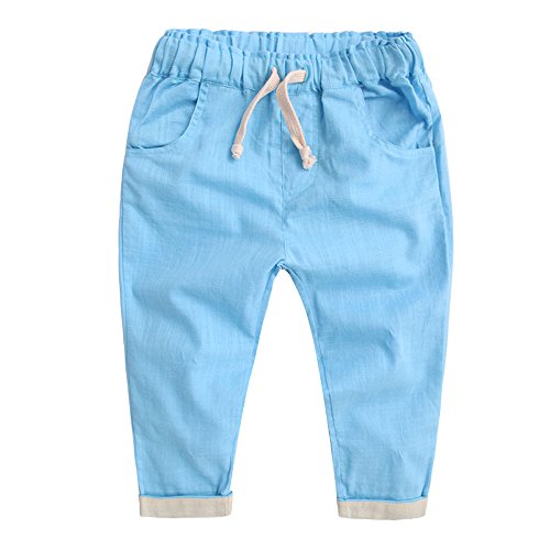 【SEBLES】ベビー 赤ちゃん キッズ 男の子 ズボン 長ズボン ボトムス 綿 コットン ポケット カジュアル ウエスト紐 無地 ソフトカラー(ライトブルー,110cm)