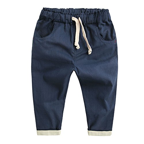 【SEBLES】ベビー 赤ちゃん キッズ 男の子 ズボン 長ズボン ボトムス 綿 コットン ポケット カジュアル ウエスト紐 無地 ソフトカラー(ネイビー,95cm)