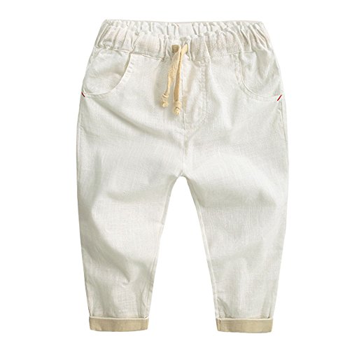 【SEBLES】ベビー 赤ちゃん キッズ 男の子 ズボン 長ズボン ボトムス 綿 コットン ポケット カジュアル ウエスト紐 無地 ソフトカラー(ホワイト,95cm)