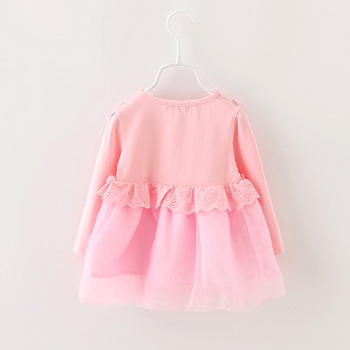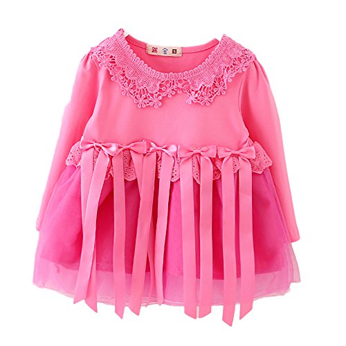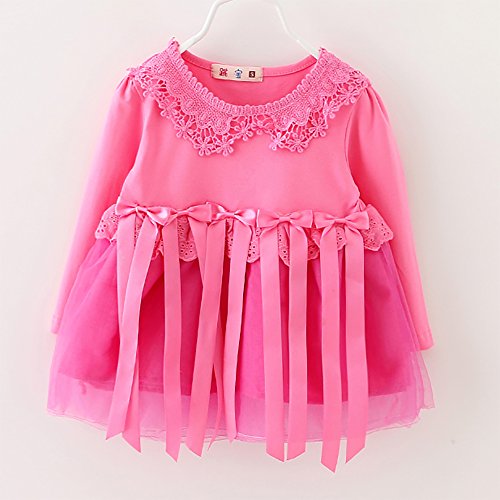 【SEBLES】ベビー服 女の子 女子 リボン レース シフォン 花 フラワー 長袖 お洒落 可愛い フリフリ ミニスカート スカート 0歳 1歳 2歳(ディープピンク,100cm)