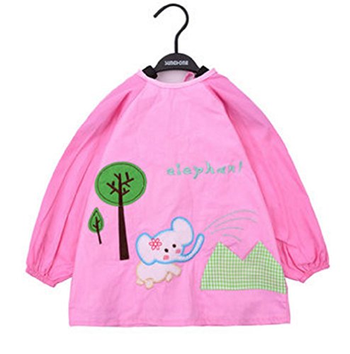 【SEBLES】 ベビー キッズ ぞう エレファント キュート スモック エプロン 防水 幼稚園 0歳 ~ 4歳 全6色 サイズ S M L XL クロスセット (ライトピンク,S)