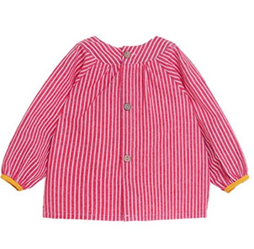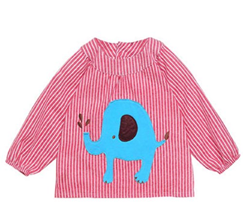 【SEBLES】 キッズ ベビー ストライプ ぞう エレファント エプロン スモック 全3色 サイズ 73cm 80cm 90cm クロスセット (レッド,90)