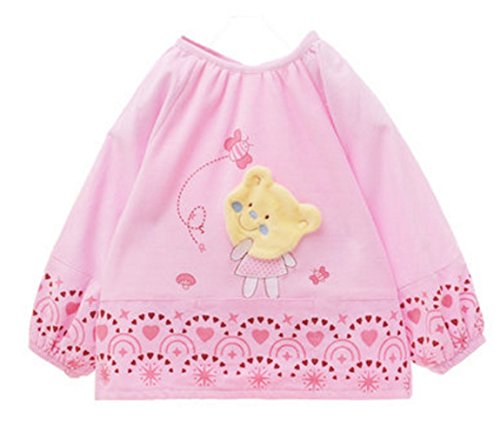 【SEBLES】 キッズ ベビー くま ベア キュート エプロン スモック 幼稚園 お絵かき 全4色 サイズ 80 90 100 クロスセット (ピンク,90)