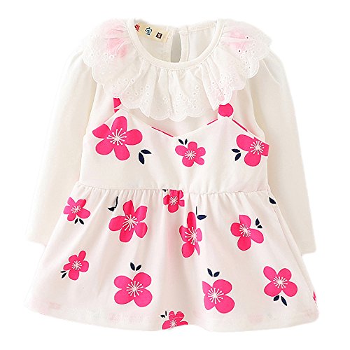 【SEBLES】ベビー服 女の子 女子 ワンピース ドレス フリル 花 フラワー 長袖 お洒落 可愛い フリフリ ミニスカート スカート 0歳 1歳 2歳(ホワイト,80cm)