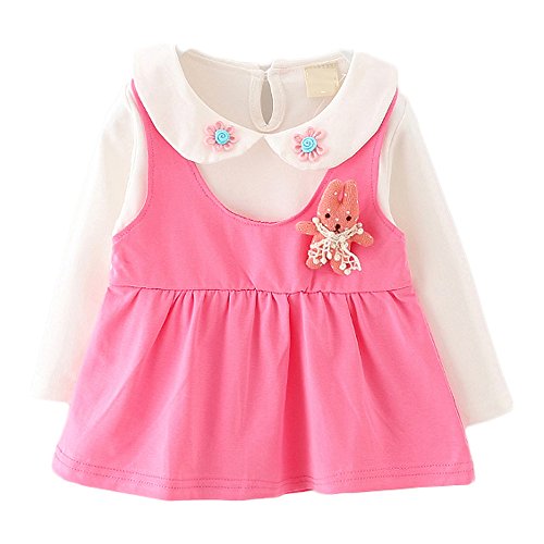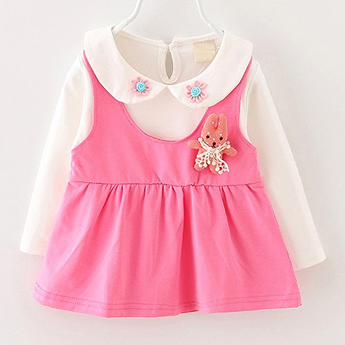 【SEBLES】ベビー服 女の子 女子 ワンピース ドレス 無地 兎 うさぎ マスコット シャツ 襟 スカート 花 フラワー 0歳 1歳 2歳(ピンク,100cm)