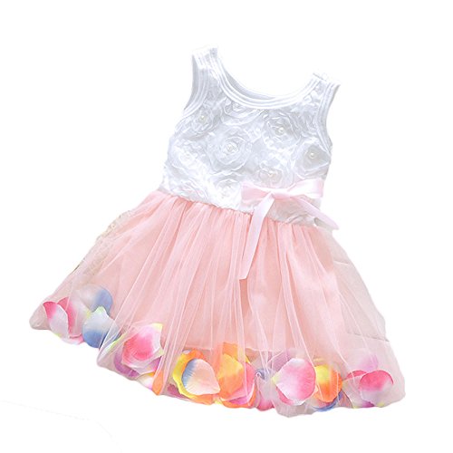 【SEBLES】ベビー服 女の子 女子 ワンピース ドレス レース シフォン オーガンジー スカート ノースリーブ 春 夏 ふんわり スカート 0歳 1歳 2歳(ライトピンク,80cm)
