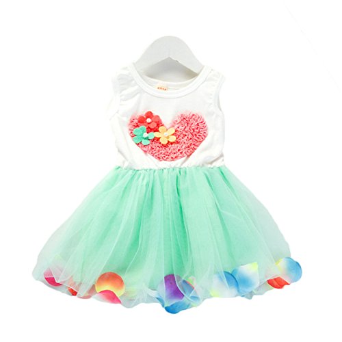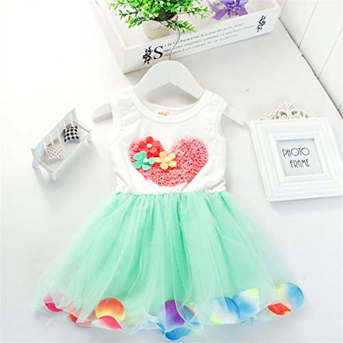 【SEBLES】ベビー服 女の子 女子 ワンピース ドレス シフォン オーガンジー スカート ノースリーブ ハート 花 春 夏 ふんわり スカート 0歳 1歳 2歳(グリーン,100cm)