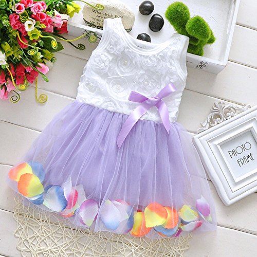 【SEBLES】ベビー服 女の子 女子 ワンピース ドレス レース シフォン オーガンジー スカート ノースリーブ 春 夏 ふんわり スカート 0歳 1歳 2歳(パープル,90cm)