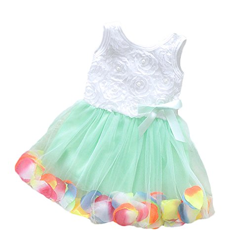 【SEBLES】ベビー服 女の子 女子 ワンピース ドレス レース シフォン オーガンジー スカート ノースリーブ 春 夏 ふんわり スカート 0歳 1歳 2歳(グリーン,100cm)