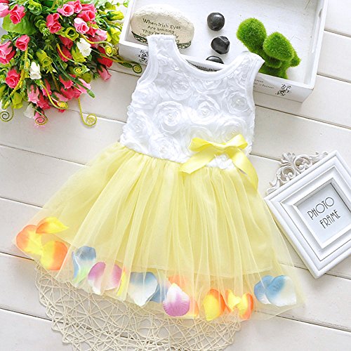 【SEBLES】ベビー服 女の子 女子 ワンピース ドレス レース シフォン オーガンジー スカート ノースリーブ 春 夏 ふんわり スカート 0歳 1歳 2歳(イエロー,100cm)