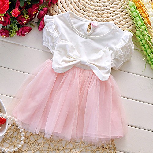 【SEBLES】ベビー服 女の子 女子 ワンピース ドレス シフォン オーガンジー スカート ノースリーブ フリル 袖 リボン 花 春 夏 ふんわり スカート 0歳 1歳 2歳(ピンク,73cm)