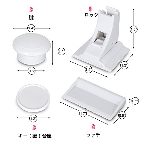 - 【ご注意】①本製品は、最大14インチ(約35cm)程度までの厚さの家具に取り付けることができます。 ②引き出しロックを付ける前には、取り付ける場所となる引き出しや戸をきれいにして、乾燥した状態にしてください。 ③引き出しロック8つに対し、鍵は3つだけですが、その鍵1つで全ての引き出しロックを解除することができます。